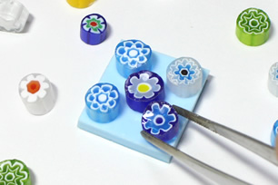 お花模様のミルフィオリや色とりどりのベネチアンガラスを使い、高温で融かし合わせるフュージング技法で作るアクセサリーや雑貨で、心も華やかに。