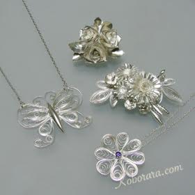 銀粘土は粘土状になった銀素材で、高温で焼成すると純銀になります。焼成前は紙粘土のように柔らかいので、自由な形に造形でき、大きな機械などをそろえなくても、造形から焼成、仕上げまでご家庭でできますので、気軽にアクセサリー作りを楽しめるようになります。